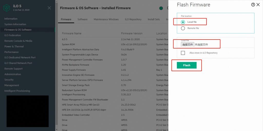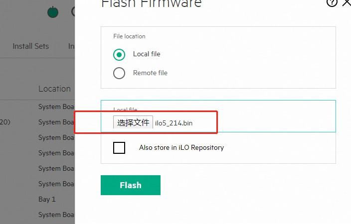 注意:ILO固件文件后缀名应该是.bin文件。请确认准备好的固件是.bin文件